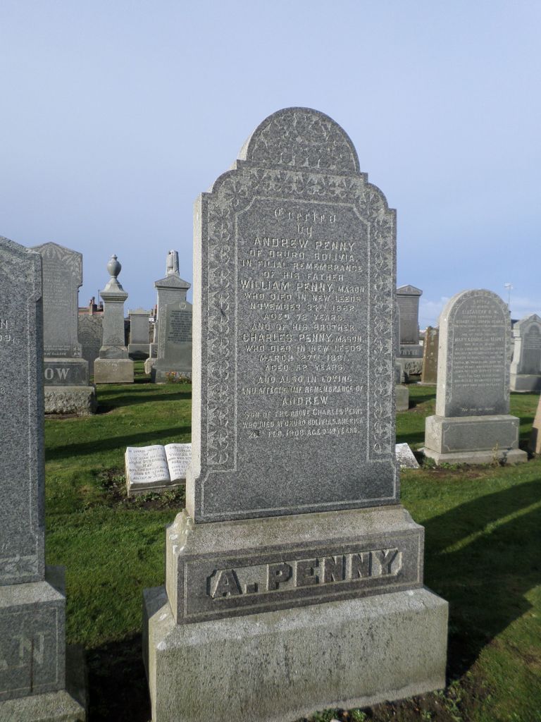 Going back to my great x5 grandfather William Penny (1717 to 1776) – he was great x2 grandfather down another Penny line to Andrew the “Silver King” of 1831 to 1890 who made his fortune mining in Bolivia. He is buried at St Combs.
